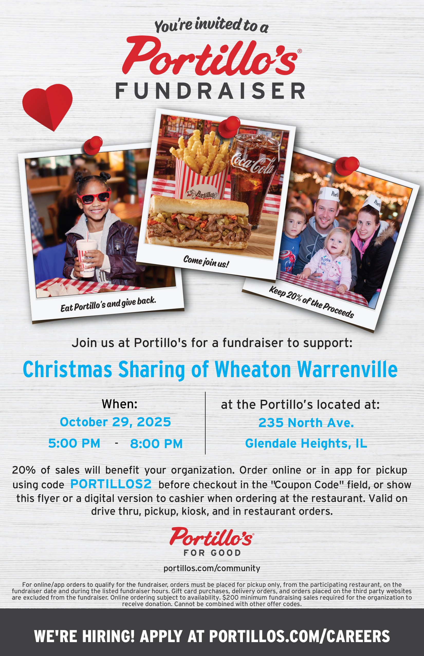 CHRISTMAS SHARING OF WHEATON WARRENVILLE coordinates efforts to provide gifts of food, gift cards, coats, toys and non-food items to our neighbors in need living within CUSD200. Help to share the joy during this 2025 season of giving! Read about our Circle of Hope partnership with Northern IL Food Bank.
