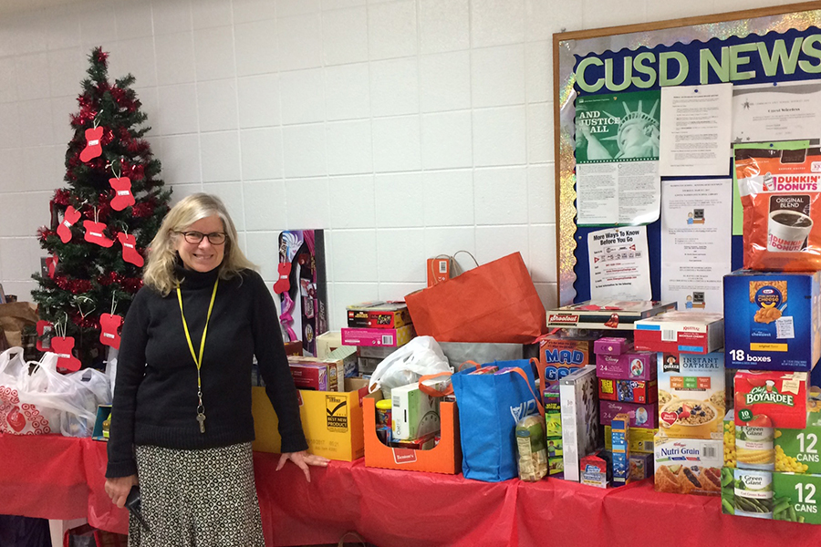 Christmas Sharing volunteers historically* collected food, gently used clothing, toys and cash from District 200 schools, local churches, scouting groups, libraries, civic groups, small businesses, corporations and individuals (as seen in photo at right). In early December of each year, items were sorted and distributed from eight church locations, to families in need as identified by school social workers.